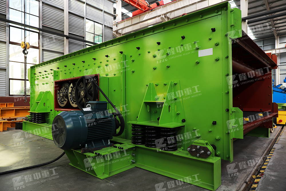 以三軸塊偏心激振器為激振源,以橡膠支承彈簧為彈性元件,以篩箱激振器等為可動部分的篩分設(shè)備。其振動器的三根軸上裝有相等偏心質(zhì)量、相同偏心半徑的配重塊。動力由電機(jī)經(jīng)皮帶傳遞至主動軸,再經(jīng)速比為1的齒輪進(jìn)行傳動,使三根軸同速旋轉(zhuǎn),從而產(chǎn)生激振力,使篩箱作強(qiáng)制連續(xù)的橢圓運動。物料以此運動為動力,在水平的篩面上沿圓周方向作不斷的拋擲運動,在拋起松散分層的同時向前運動,周而復(fù)始地完成粒度分級和向前輸送的過程。